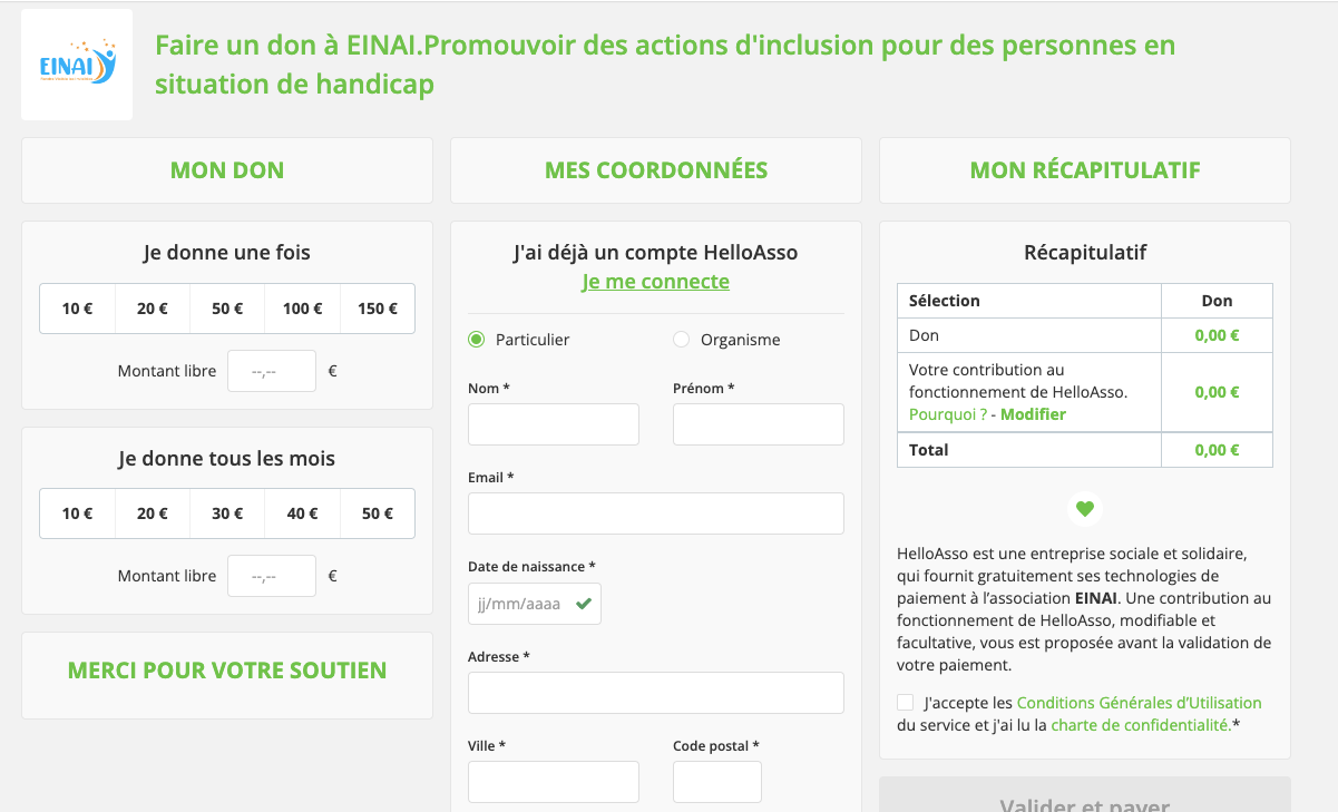 Face à une société qui juge, qui enferme et exige trop souvent de nous, d’être dans la norme pour être accepté et reconnu, Einai nous invite à repenser et à agir. Agir contre l’intolérance, la peur de l’autre, la peur de l’étrange enfin de ce qui nous dérange. A travers des valeurs de tolérance, de respect et de compassion, nous œuvrons à la connaissance, la compréhension, la rencontre, le partage pour mieux vivre ensemble. Vivre ensemble au-delà de la méfiance, du jugement et des préjugés sur le handicap.